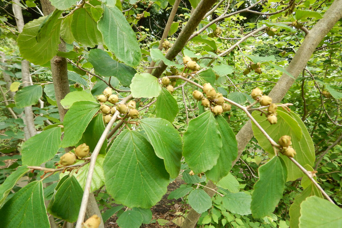 短毛が表面に生える果実は10〜11月に褐色に熟します。